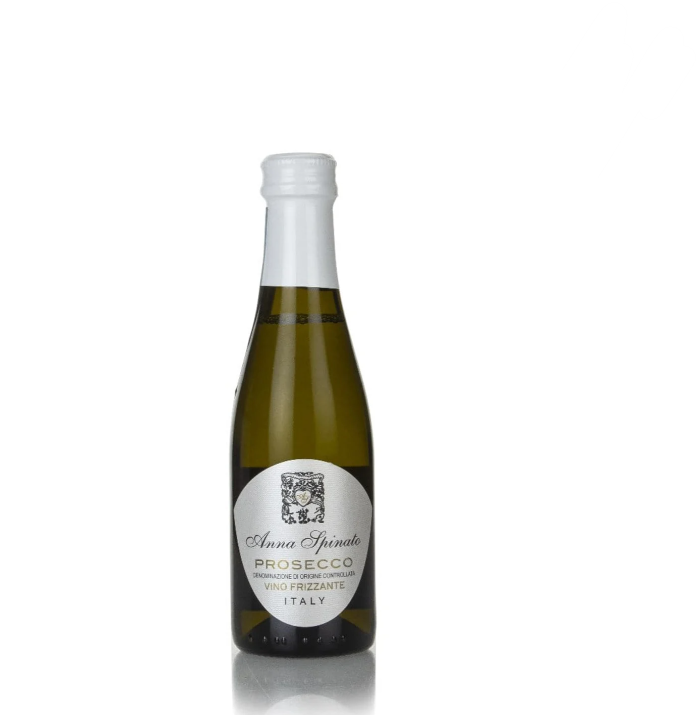 A 200ml bottle of Prosecco, produced by Anna Spinato in the Veneto region of Italy. Made with 100% Glera grapes, this delicately sparkling Prosecco is ideal if you're in the mood for a glass and a bit!